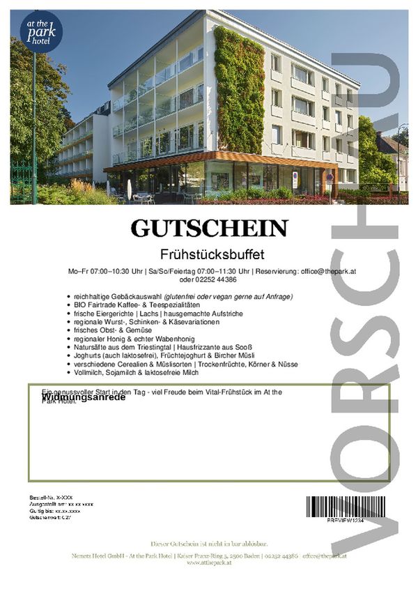 Schenken Sie besonderen Genuss im At the Park Hotel – ein vielseitiges Vital-Frühstück für Genießer.